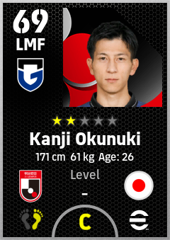 . Kanji Okunuki is a Left Midfielder footballer from Japan who plays for Gamba Osaka in eFootball 2026.