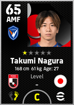 . Takumi Nagura is a Attacking Midfielder footballer from Japan who plays for V-Varen Nagasaki in eFootball 2026.