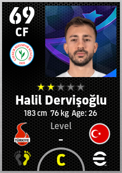 . Halil Dervişoğlu is a Center Forward footballer from Türkiye who plays for Çaykur Rizespor in eFootball 2026.
