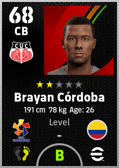 . Brayan Córdoba is a Center Back footballer from Colombia who plays for Cúcuta Rn in eFootball 2026.