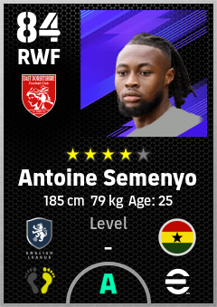 . Antoine Semenyo is a Right Wing Forward footballer from Ghana who plays for Bournemouth Rb in eFootball 2026.