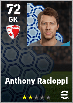 . Anthony Racioppi is a Goalkeeper footballer from Switzerland who plays for Sion Rw in eFootball 2026.