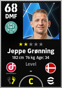 . Jeppe Grønning is a Defensive Midfielder footballer from Denmark who plays for Viborg Gh in eFootball 2026.