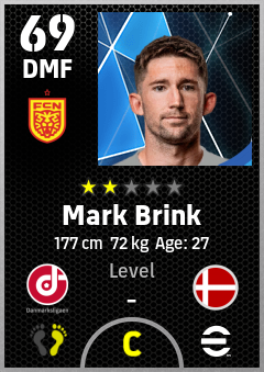 . Mark Brink is a Defensive Midfielder footballer from Denmark who plays for Nordsjælland Rg in eFootball 2026.