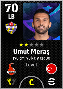 . Umut Meraş is a Left Back footballer from Türkiye who plays for Eyüpspor in eFootball 2026.