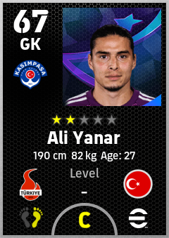 . Ali Yanar is a Goalkeeper footballer from Türkiye who plays for Kasımpaşa Sk in eFootball 2026.