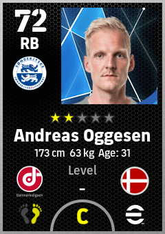 . Andreas Oggesen is a Right Back footballer from Denmark who plays for Haderslev Hb in eFootball 2026.