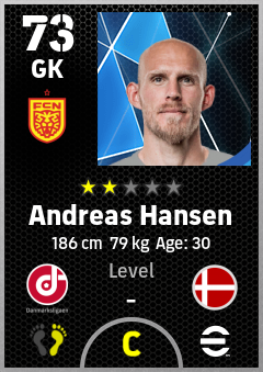 . Andreas Hansen is a Goalkeeper footballer from Denmark who plays for Nordsjælland Rg in eFootball 2026.