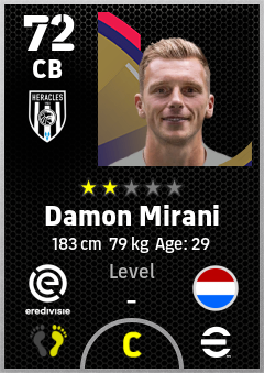 . Damon Mirani is a Center Back footballer from Netherlands who plays for Heracles Almelo in eFootball 2026.