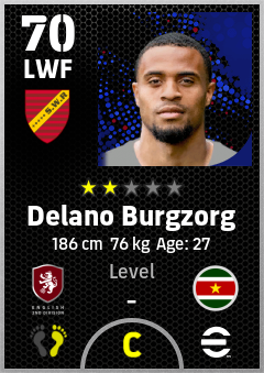 . Delano Burgzorg is a Left Wing Forward footballer from Suriname who plays for Bristol R in eFootball 2026.