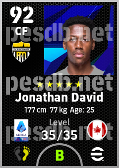 .Jonathan David is a Center Forward footballer from Canada who plays for Piemonte Bn in eFootball 2026.