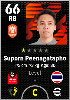 . Suporn Peenagatapho is a Right Back footballer from Thailand who plays for Ratchaburi Fc in eFootball 2026.