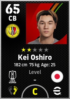 . Kei Oshiro is a Center Back footballer from Japan who plays for Negeri Sembilan Fc in eFootball 2026.