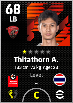 . Thitathorn A. is a Left Back footballer from Thailand who plays for Uthai Thani Fc in eFootball 2026.