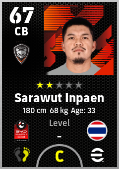 . Sarawut Inpaen is a Center Back footballer from Thailand who plays for Nakhonratchasima Fc in eFootball 2026.