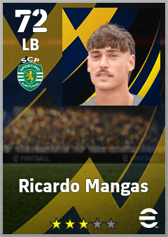 . Ricardo Mangas is a Left Back footballer from Portugal who plays for Sporting Cp in eFootball 2026.