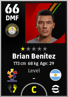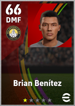 . Brian Benítez is a Defensive Midfielder footballer from Argentina who plays for Villavicencio Bn in eFootball 2026.