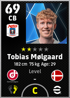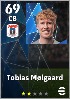 . Tobias Mølgaard is a Center Back footballer from Denmark who plays for Aarhus Hb in eFootball 2026.