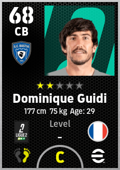 . Dominique Guidi is a Center Back footballer from France who plays for Sc Bastia in eFootball 2026.