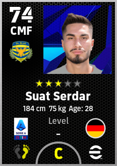 . Suat Serdar is a Center Midfielder footballer from Germany who plays for Hellas Verona Fc in eFootball 2026.