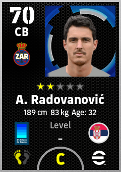 . A. Radovanović is a Center Back footballer from Serbia who plays for Zaragoza Ba in eFootball 2026.