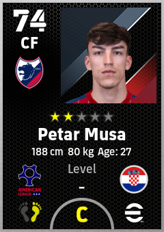. Petar Musa is a Center Forward footballer from Croatia who plays for Dallas Rw in eFootball 2026.