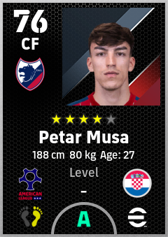 . Petar Musa is a Center Forward footballer from Croatia who plays for Dallas Rw in eFootball 2026.
