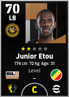 . Junior Etou is a Left Back footballer from Congo who plays for Pittsburgh Riverhounds in eFootball 2026.