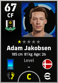 . Adam Jakobsen is a Center Forward footballer from Denmark who plays for Castellón Nb in eFootball 2026.
