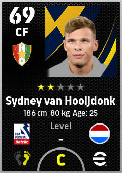 . Sydney Van Hooijdonk is a Center Forward footballer from Netherlands who plays for Cf Estrela Da Amadora in eFootball 2026.