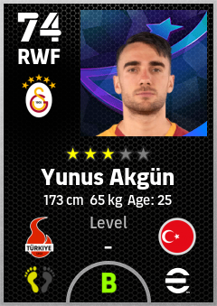 . Yunus Akgün is a Right Wing Forward footballer from Türkiye who plays for Galatasaray Sk in eFootball 2026.