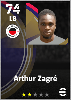 . Arthur Zagré is a Left Back footballer from France who plays for Excelsior Rotterdam in eFootball 2026.