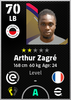 . Arthur Zagré is a Left Back footballer from France who plays for Excelsior Rotterdam in eFootball 2026.