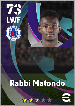 . Rabbi Matondo is a Left Wing Forward footballer from Wales who plays for Rangers Fc in eFootball 2026.