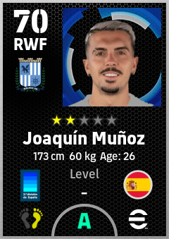 . Joaquín Muñoz is a Right Wing Forward footballer from Spain who plays for Málaga Ab in eFootball 2026.