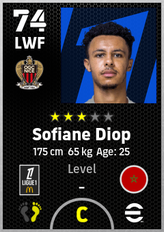 . Sofiane Diop is a Left Wing Forward footballer from Morocco who plays for Ogc Nice in eFootball 2026.