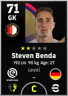 . Steven Benda is a Goalkeeper footballer from Germany who plays for Feyenoord in eFootball 2026.