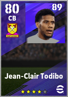 . Jean-Clair Todibo is a Center Back footballer from France who plays for West Ham Rb in eFootball 2026.
