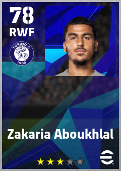 . Zakaria Aboukhlal is a Right Wing Forward footballer from Morocco who plays for Torino Fc in eFootball 2026.