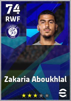 . Zakaria Aboukhlal is a Right Wing Forward footballer from Morocco who plays for Torino Fc in eFootball 2026.