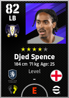 . Djed Spence is a Left Back footballer from England who plays for Tottenham Wb in eFootball 2026.