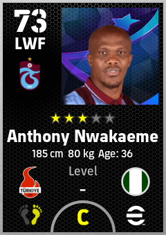 . Anthony Nwakaeme is a Left Wing Forward footballer from Nigeria who plays for Trabzonspor in eFootball 2026.