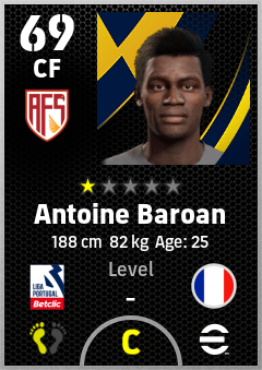 . Antoine Baroan is a Center Forward footballer from France who plays for Avs Futebol in eFootball 2026.