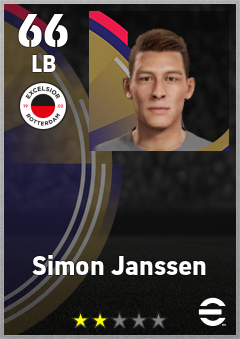 . Simon Janssen is a Left Back footballer from Netherlands who plays for Excelsior Rotterdam in eFootball 2026.