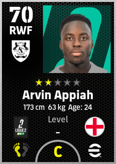. Arvin Appiah is a Right Wing Forward footballer from England who plays for Amiens Sc in eFootball 2026.