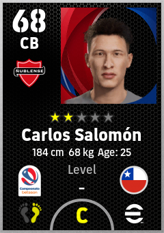 Carlos Salomón is a Center Back footballer from Chile who plays for Chillán R in eFootball 2026.
