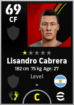 . Lisandro Cabrera is a Center Forward footballer from Argentina who plays for Free in eFootball 2026.