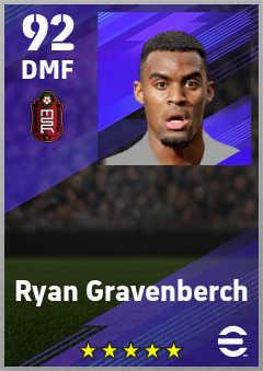 . Ryan Gravenberch is a Defensive Midfielder footballer from Netherlands who plays for Liverpool R in eFootball 2026.