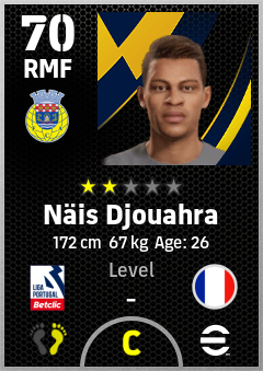. Näis Djouahra is a Right Midfielder footballer from France who plays for Fc Arouca in eFootball 2026.