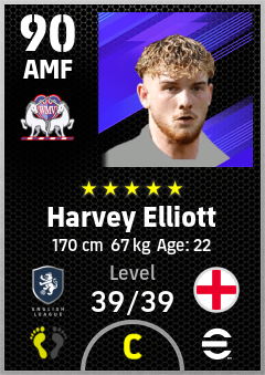 . Harvey Elliott is a Attacking Midfielder footballer from England who plays for Aston Rb in eFootball 2026.